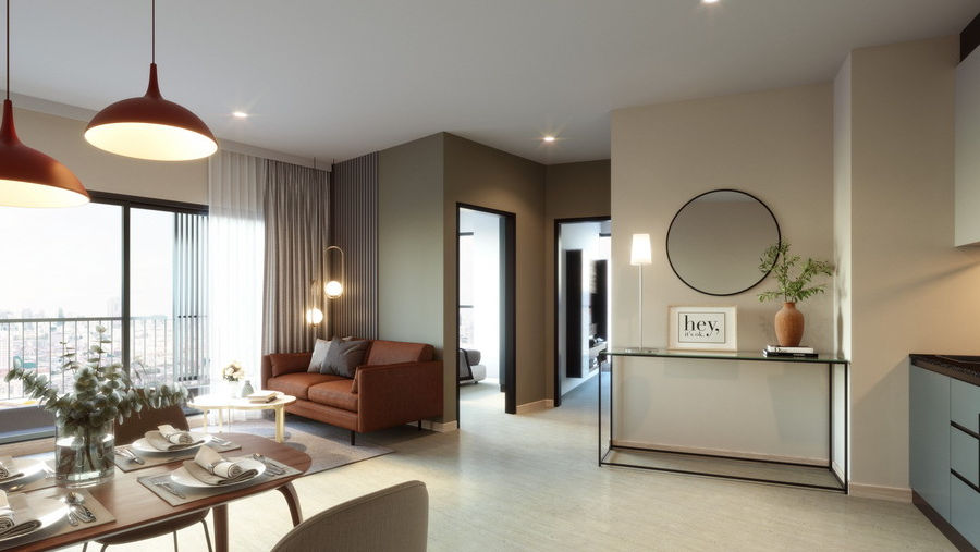 2 ห้องนอน: ขนาด 45 – 60 ตร.ม.